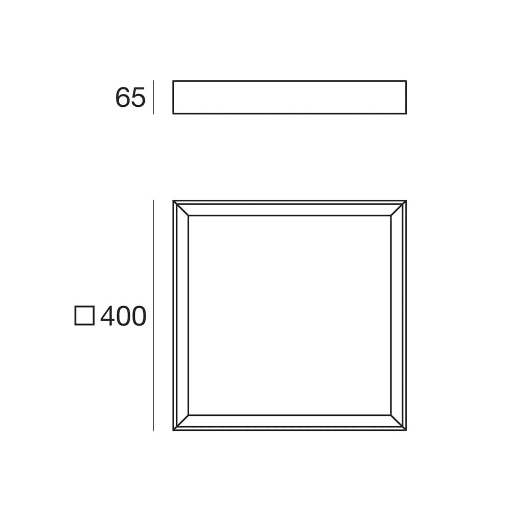 Light source: 1 topLED 31W – 3228 lumens – 3000 K – CRI=90 – 220-240 V – IP40. Dimensions: L 400 mm H 65 mm W 400 mm
