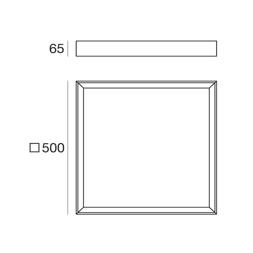 Light source: 1 topLED 45W – 4700 lumens – 3000 K – CRI=90 – 220-240 V – IP40. Dimensions: L 500 mm H 65 mm W 500 mm