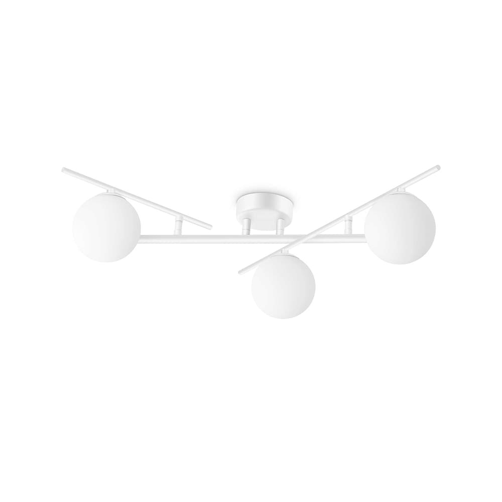 The Atlas PL3 ceiling light represents an elegant interior lighting solution, part of the prestigious Ideal-Lux collection. Designed to offer diffused and adjustable lighting, while satisfying aesthetic needs. The frame, made of metal and matt painted, has positionable arms that allow flexibility in directing the light. This feature adds versatility and the possibility of customization in illuminating different corners of the environment. The ceiling light is available in white, black and gold finishes, offering aesthetic options to match a variety of decor styles. The acid-etched white blown glass diffusers help create a diffused and soft light, giving the room a welcoming and refined atmosphere. The Atlas PL3 ceiling light stands out for its elegant design and advanced functionality. With its ability to adjust the light and refined finishing options, it is perfect for stylishly illuminating spaces such as living rooms or dining rooms, highlighting Ideal-Lux’s commitment to creating sophisticated interior lighting products.