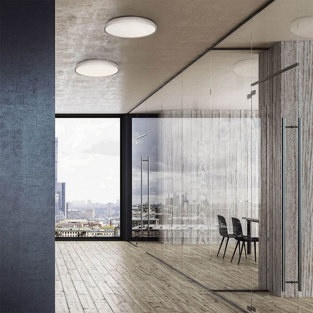 Light source: LED SMD (included) – 56W – 3000k – 220-240V – 4480 lumens – CRI >90 – IP20 – TRIAC dimmable . Dimensions: Ø 60 cm H 8 cm Ø canopy Att.Plaf.34 cm