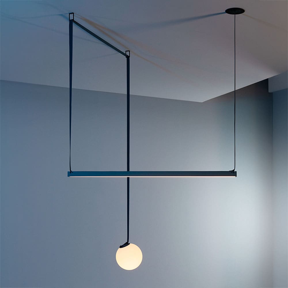 Plusminus, designed by Diez Office and produced by the Vibia brand, is a versatile lighting system that takes the concept of linear ceiling lighting to completely innovative levels. An electrical conductor is inserted inside the Plusminus fabric belt which allows the lamps to be fixed freely, creating unique lighting solutions in situ. The toolkits include multiple elements – pieces, colors and textures – that can be adapted and combined to meet the needs and limitations of each space. They are a valuable creative tool for unique projects and offer designers and architects endless possibilities for integrating lighting into interior environments. The belt, whose length is adaptable according to needs, allows you to position different lamps and works thanks to a simple plug-in technology that offers unprecedented ease of installation and connection. The belt can be adjusted to different levels of tension, from tight to loose, and offers click-and-connect functionality thanks to the buckle attached to each lamp.