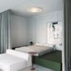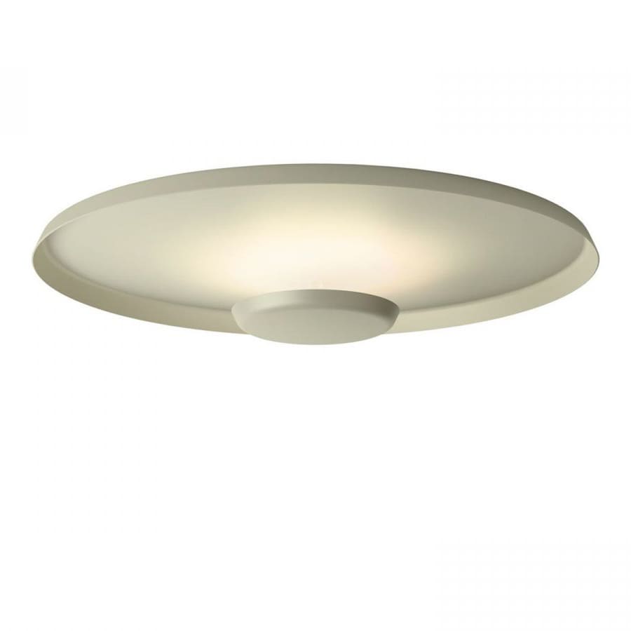 Top is a ceiling lamp to be installed on a surface. Designed by Ramos & Bassols for the Vibia brand, the lamp features simple lines that integrate completely with the ceiling. The TOP ceiling lamp is a modern reinterpretation of the timeless rosette motif. Two simple circles create a focal point of LED light. Generates a halo effect of uniform, indirect light and a relaxing environment. The ceiling lamp, made of aluminium, is available in two sizes, medium and large, the latter equipped with a glass diffuser that emits direct general light.