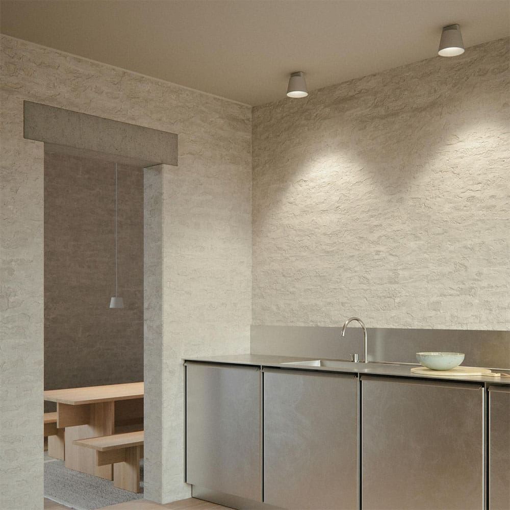 Highly professional, but far from impersonal: w222 Focal, designed by David Chipperfield for the Wästberg brand, was created not only to provide exceptional focal light, but also to enrich its surroundings with a design that is at the same time clearly architectural and warmly appealing. It cleverly combines the square and the circle into an archetypal whole that feels familiar but also interesting. With its understated grace and simple installation, w222 Focal easily adapts to all types of spaces and aesthetics. w222 Focal is composed of two distinct and intersecting bodies: one contains the light source, the other a mounting bracket. Once the bracket is attached to the wall or ceiling, the lampshade can be easily clipped into place. In addition to the main ceiling-mount version, w222 Focal can be wall-mounted, suspended or recessed, allowing for a wide variety of solutions. Its thinness and refined lines make it an ideal complement for a wide range of environments.