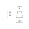 Light source: COB LED 9,6 W (included) – 2700 K – 885 lumens – CRI=90 – 220/240V – Phase-cut dim – IP20. Dimensions: H 125 mm Ø 130 mm