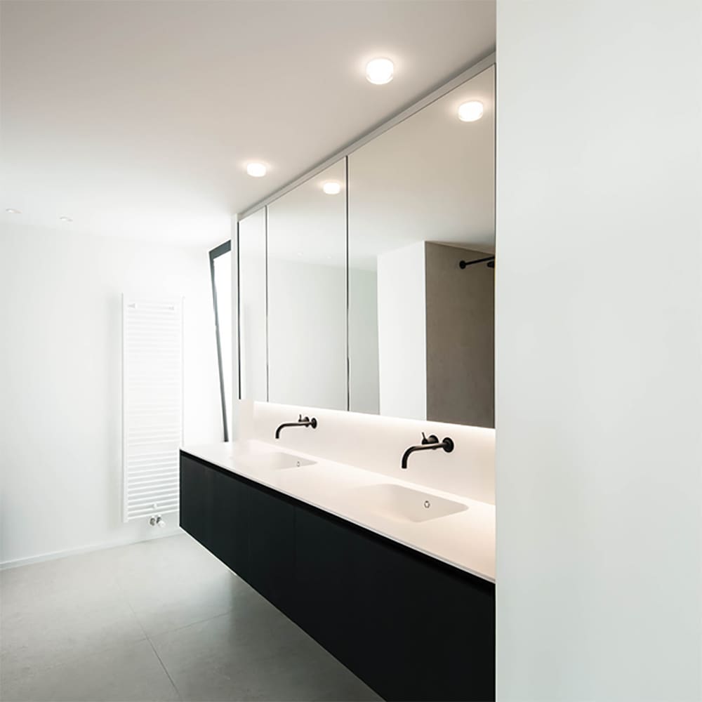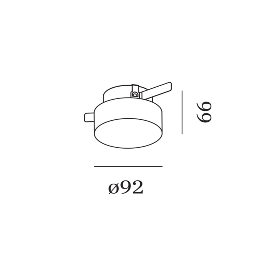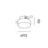Light source: LED 7,2 W – 3000 K – CRI≥90 – 640 lumens – 220/240 V – phase-cut dimmer – IP44. Dimensions: H 66 mm Ø 92 mm