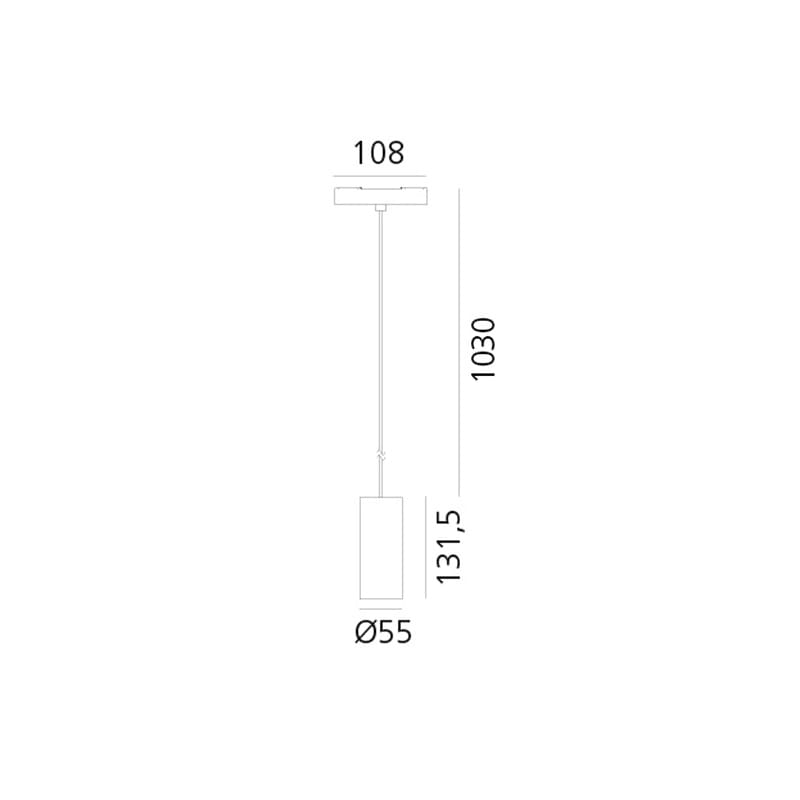 Light source: LED 23W (driver not included) – 3000K – CRI=90 – IP20 – 1721 lumens – dimmable DALI. Dimensions: ø 55mm H 131 mm