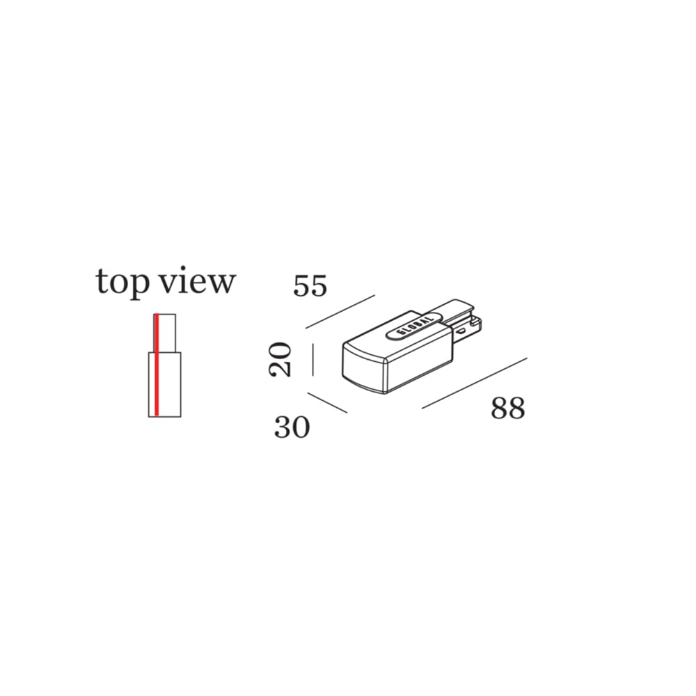 Light source: max. 3 x 1.5mm² – 16A – 220-240V. Dimensions: L 88 mm W 30 mm H 20 mm