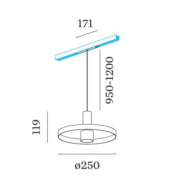 Light source: LED COB 8W 48V / 3000K / DALI dimmer / 505 lumens / IP20 / CRI≥90 . Dimensions: Ø 250 mm H 119 mm