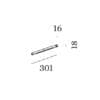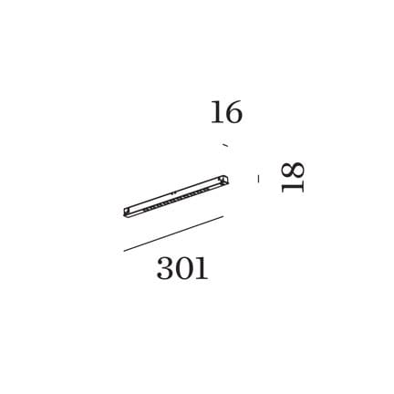 Light source: LED PCB 9W 48V / 3000K / IP20 / 880 lumens / CRI≥90 / not dimmable . Dimensions: L 301 mm W 16 mm H 18mm