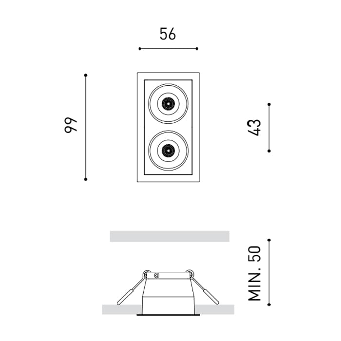 Light source: LED 4,2W – 3000 K – 420 lumens – CRI>90 – 220-240V – IP20. Dimensions: L 9,9 cm W 5 cm H 5,6 cm