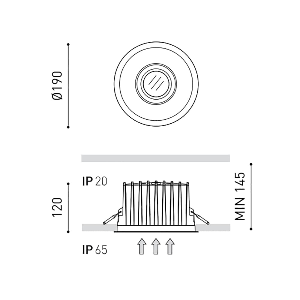 DUOMO IP65 is a recessed LED downlight by Arkoslight, designed to deliver high luminous output with exceptional visual comfort. Its recessed LED position, combined with an optical glass lens, effectively reduces the UGR index, while the anti-glare screen minimizes direct glare, ensuring a more comfortable visual experience.