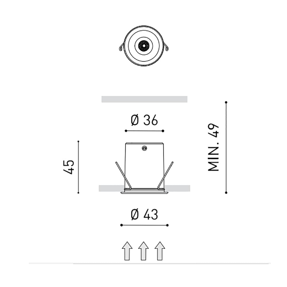 Shot Light by Arkoslight is a recessed lighting fixture designed to provide maximum visual comfort with a compact and discreet aesthetic. Its goal is to create a small point of light on the ceiling while concealing the light source, ensuring a clean and minimal look. To offer precise and glare-free illumination, Shot Light features an anti-glare screen and a custom-designed micro-reflector, which generates a perfectly defined light beam. This makes it ideal for accent or general lighting in residential, commercial, and hospitality settings. Perfect for interior design projects requiring subtle and refined lighting, Shot Light stands out for its high luminous efficiency and premium construction quality, delivering elegant and efficient lighting solutions.