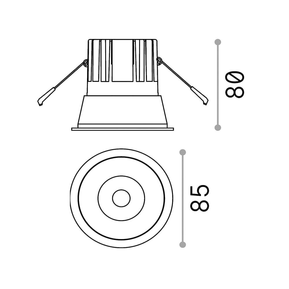 Light source:LED COB CREE 11 W (bulb included) – 3000 K – 1100 lumens – CRI>80 – 220-240V – IP20. Dimensions: H 80 mm Ø 85 mm