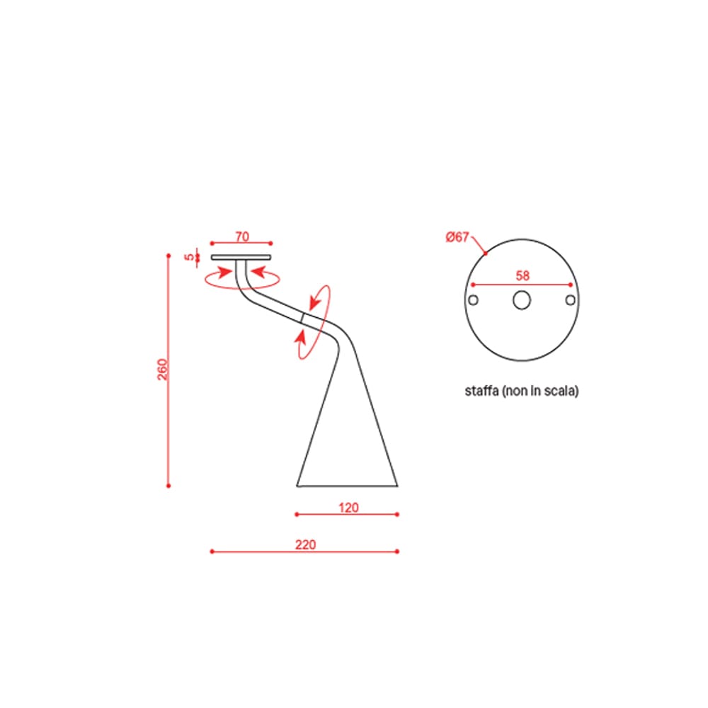 Light source: LED 1 x max 7,5 W E27 (not included) – 220/240 V – Dimmer according to the bulb – IP40. Dimensions: L 22 cm Ø 12 cm H 26 cm