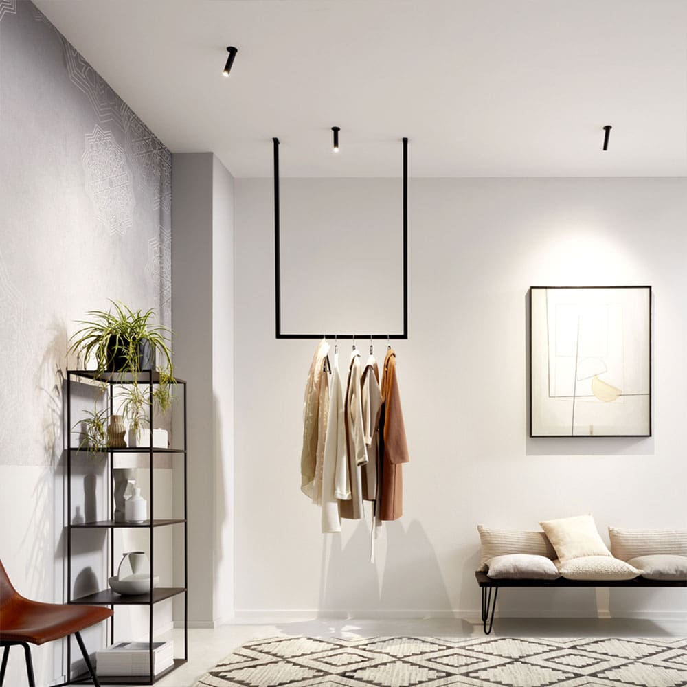 MATCH SNEAK Trimless 1.0 by Wever e Ducré is a minimalist ceiling recessed spotlight, perfect for modern interiors. Made of powder-coated die-cast aluminum, it comes in various matte finishes: satin white, satin black, bronze, champagne, brushed aluminum, and gunmetal. The slightly protruding cylindrical body allows for precise light direction, making it ideal for lighting corridors, kitchens, living areas, showrooms, or workspaces. Equipped with an integrated LED light source available in 2700K or 3000K, with a standard optic and 30° beam angle, it provides warm and focused illumination. Installation is achieved through frameless recessed ceiling mounting, ensuring seamless and discreet integration.