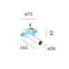 Light source: COB LED 6,1W – 3000 K – 565 lumens – CRI ≥ 90 – IP20. Optic: emission angle 30° Standard – driver excluded – 18V. Dimensions: H 117 mm Ø 26 mm