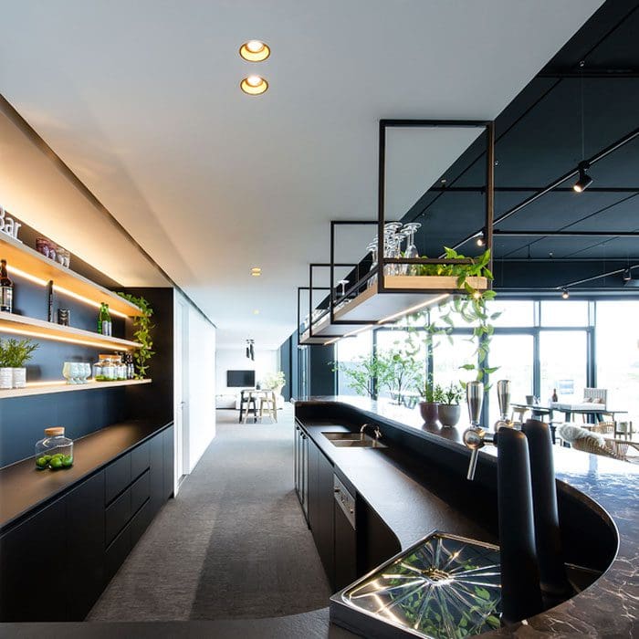 The DEEP family has no unsolvable lighting problems. You will find what you are looking for here, be it rigid downlights, adjustable variants or asymmetrical spots. In general, the luminaires of our DEEP family prefer to remain hidden deep in the ceiling. Their narrow edge makes this possible, allowing them to blend seamlessly with it. This trimless effect makes these space-saving multi-talents particularly popular. Thanks to the recessed installation in a circular hole in the ceiling, the visible support is hidden. The result is a particularly captivating and sophisticated look that minimizes glare. Many spots, available as PAR16, MR16 or LED, can also be dimmable via phase cut, DALI or Bluetooth. Thanks to the new members of the family, DEEP is now available with a small diameter, a low installation height and trimless. Incredible.
