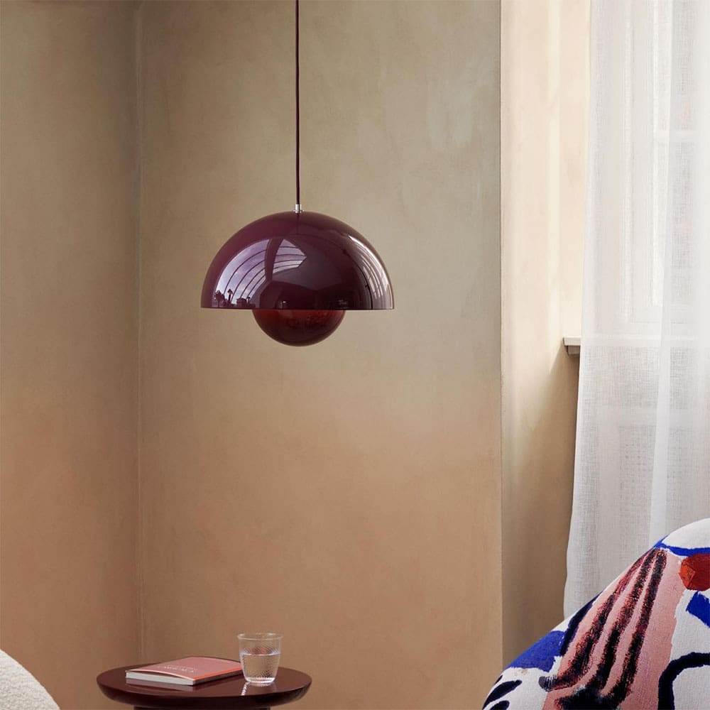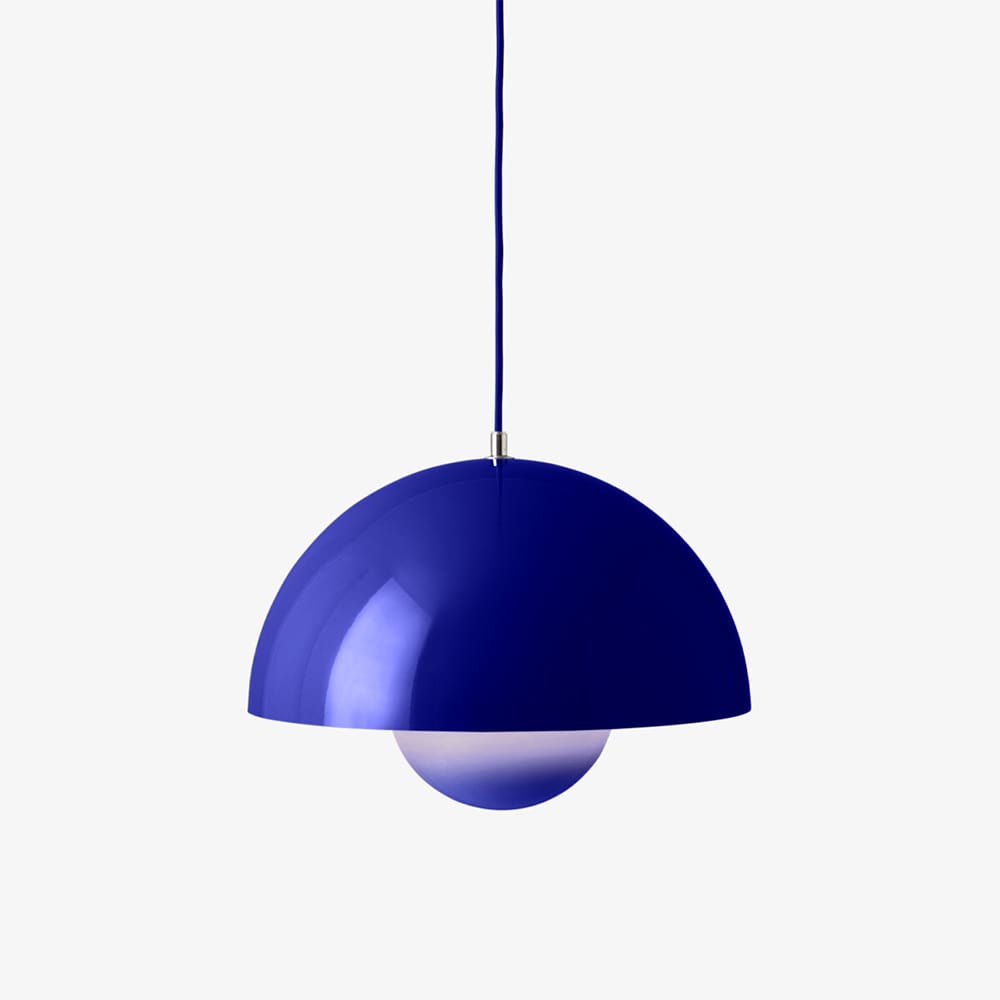 Flowerpot VP7 is a suspension lamp designed by Verner Panton and produced by the &Tradition brand. Among the most innovative Danish designs of the 1960s, Verner Panton’s iconic Flowerpot shape is available in a series that now includes seven different models. In close collaboration with the Panton family, we are delighted to welcome five new, exciting and vibrant colors to our range for 2023: Cobalt Blue, Swim Blue, Vermilion Red, Tangy Pink and Dark Plum. In addition to this dazzling color expansion, we’re also thrilled to welcome a re-release of an original ’70s-inspired black and white Panton wave pattern design.