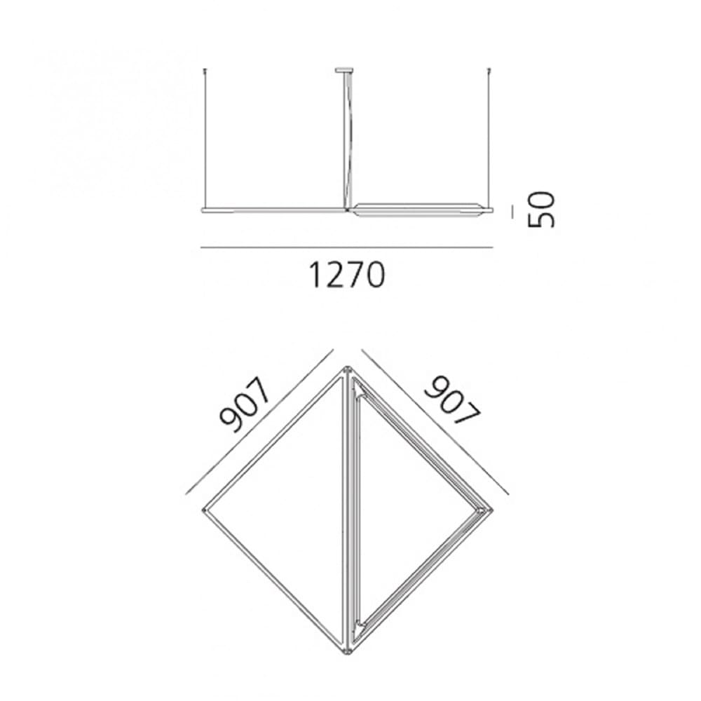Light source: LED 65W 3000K – 6475 lumens – CRI90 – dimmable Dali . Dimensions: L 1270 mm W 1270 mm H 50 mm H maximum from the ceiling 1500 mm