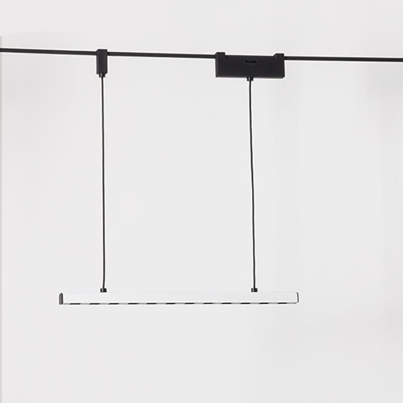 Funivia is a metal track lighting system, designed by Carlotta de Bevilacqua and produced by the Artemide brand. Cableway is a functional network of relationships, material and immaterial, free and inclusive, capable of evolving through the cooperation of its elements. A rope, the cable that carries energy, and nails, the fixing elements in space, are the basis with which to go far, overcome the limits given by the rigidity of the systems. The cable, with a special minimal section but capable of supporting mechanical tensions and thermal stress, is the distribution channel of the system’s energy and the load-bearing element on which the light elements are connected and runs seamlessly in space, overcoming the limits of the three dimensions. The light elements are hooked onto the cable thanks to a “bridge” element, a sort of power-stealing padlock that mechanically fixes the device and takes the energy from the cable to power it. Funivia breaks a pattern common to existing lighting systems, moving away from the rigidity of fixed modules (in space, in stock, in production).