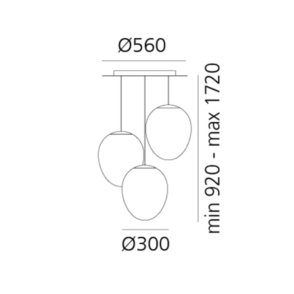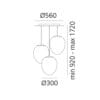 Light source: 55W – 3000K – 3331 lumens – CRI=90 – IP20. Dimensions: H max. 1720 mm Ø 300 mm Ø base 560 mm
