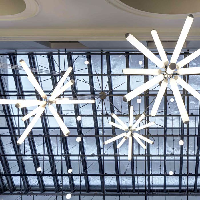 Puro Sparkle is a collection of majestic suspension lamps designed by the designer Luciè Koldovà and produced by the Brokis brand. Puro is a boldly minimalist variation of mood pendant lights. The inspiration for the collection and its name derive from the Spanish word for “cigar”, which also means “pure” and is a reference to the clean lines of the composition. The diffuse glow of the tubes elicits a dynamic ambience, while the alternating glossy and matte finishes provide a certain degree of provocation. Puro offers striking ambient lighting, as well as lighting for offices, hospitality interiors, boutiques, showrooms and private dining rooms.