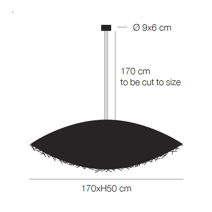 Light source: E27, 110V (bulbs not supplied)-240V, AC 3x8W, 2700k – lumens 2700 – CRI >80 – Dimmable triac – Dimensions: shade 170×50 cm, base Ø 9×6 cm, susp. cable 170 cm, cuttable to size