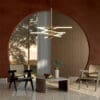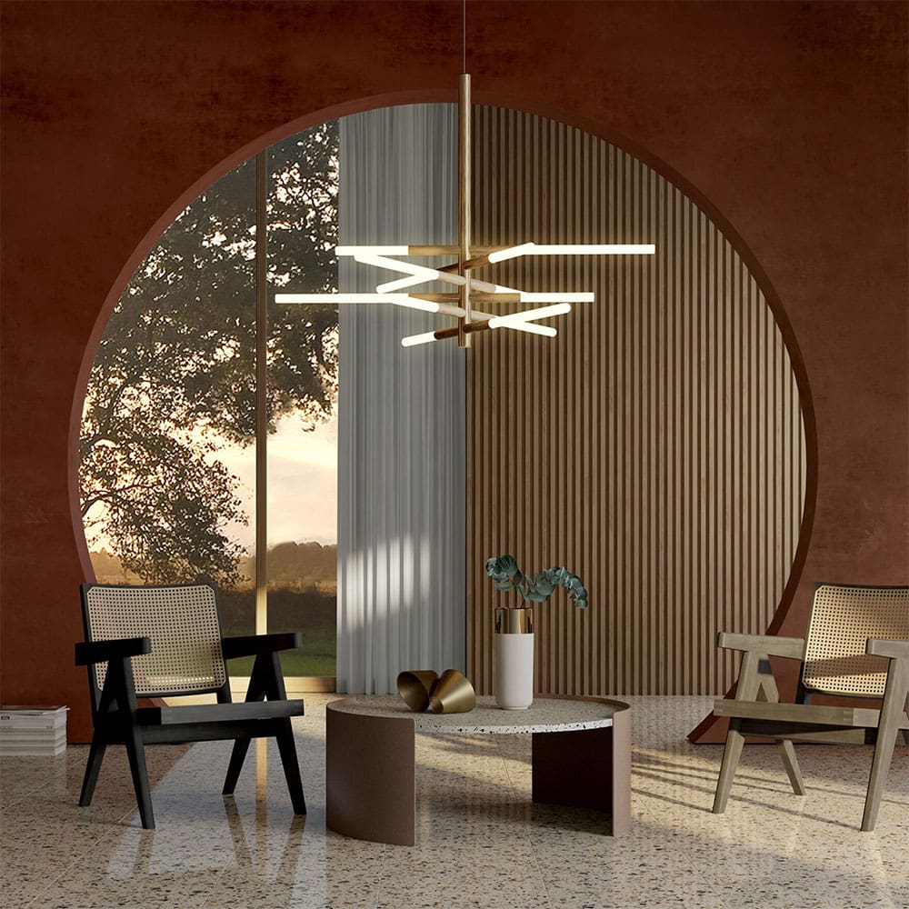 Drawing inspiration from the intricate structure of a snowflake, Bianca, designed by Dainelli Studio, is made up of modules that have been arranged in a precise sequence to ensure the dynamism of the lamp. The Bianca double pendant lamp is available in gold lacquered and matt silk black lacquered finishes. The light sources, in opal white glass finish, are included.