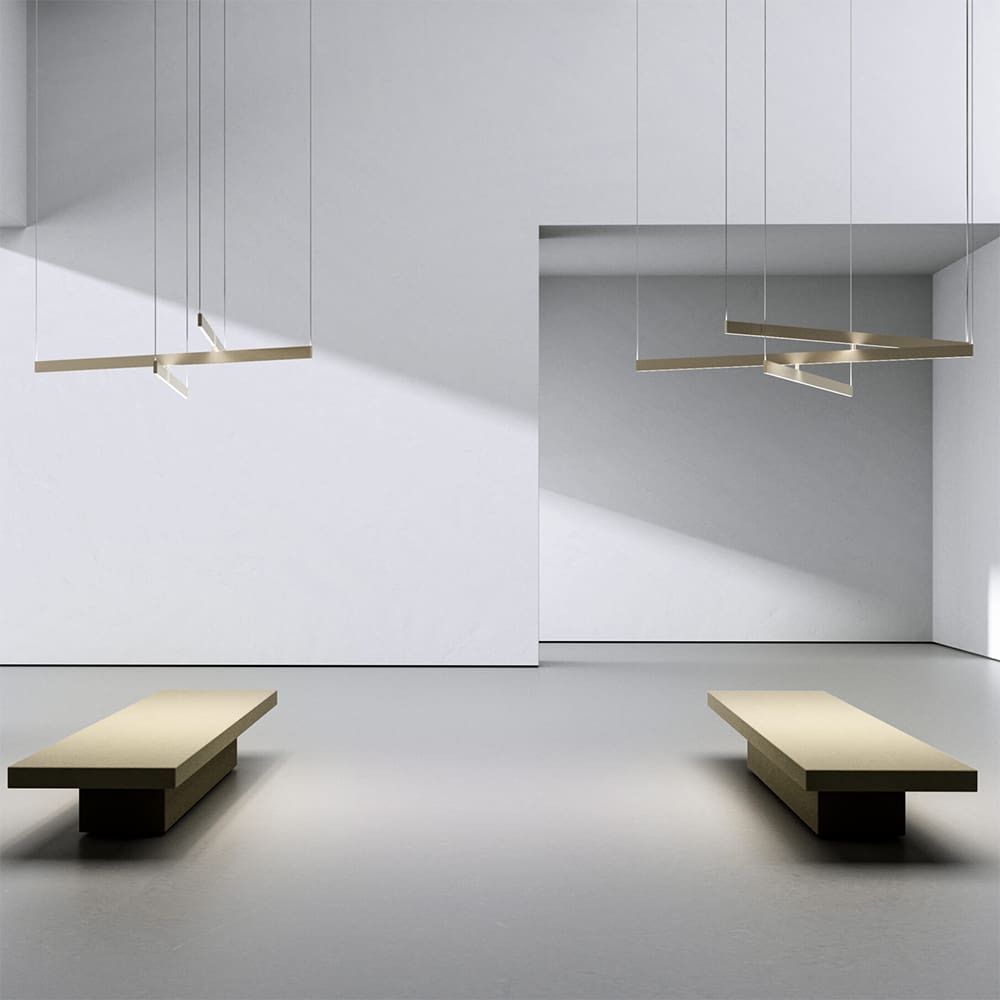 With a strong expressive force, its graphic sign becomes a sculpture that illuminates and delights. Fly, designed by Massimiliano Raggi, is a versatile lamp that can be used in different rooms of the home, or in commercial and hospitality settings. The Fly light bar is available in satin golden nickel, brushed nickel-bronze and anthracite finishes. The Fly Multiple suspension version allows you to orient and position the arms to create different compositions, and provides double light emission (above and below) for both direct and ambient light.