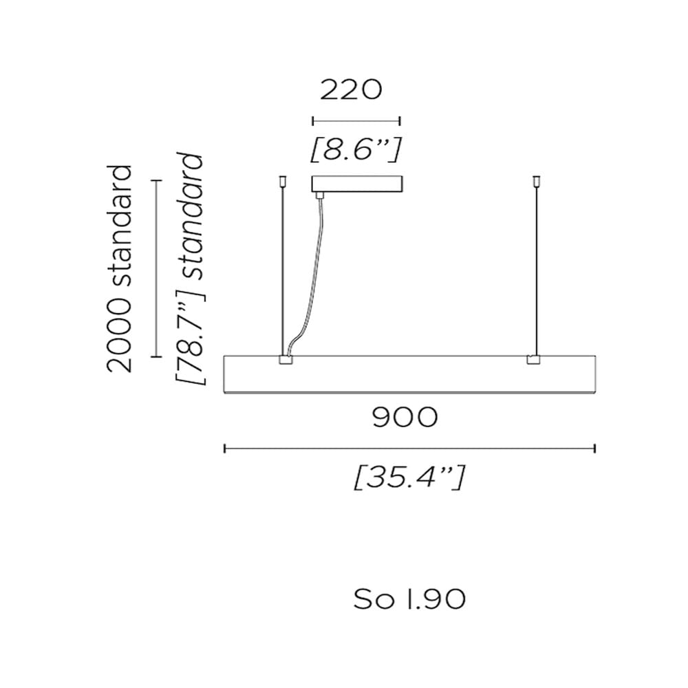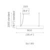 Light source: 1 x 40W Custom LED – 3750 lumens – 2700 K – CRI>90 – 220/240 V – Phase-cut dimmable/Triac – IP20. Dimensions: H 2107 mm L 900 mm W 119 mm