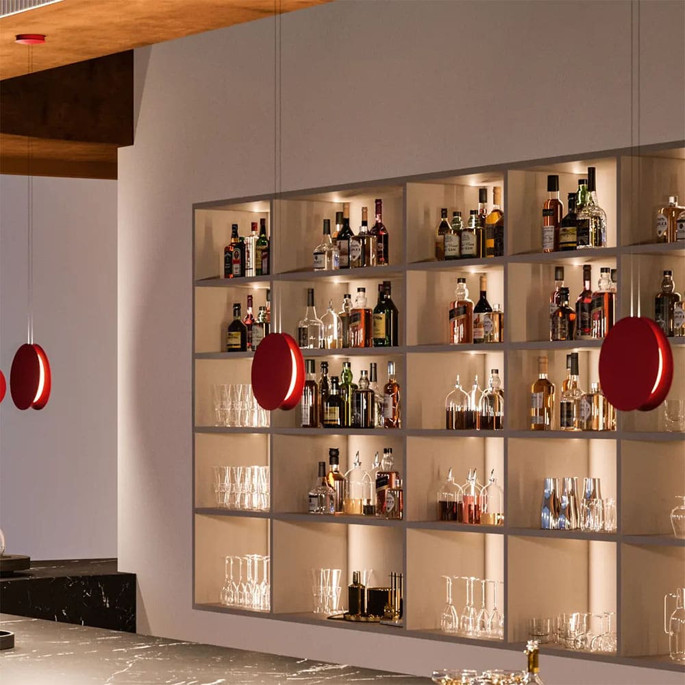 Yo-Yo Ceiling offers optimal glare control and a more pronounced emission depending on the direction chosen.Yo-Yo is composed of two equal, slightly oblique parts that enclose a radial emission LED source, whose shape (in phase of aesthetic patent) recalls the unforgettable and timeless yo-yos. The result is a variable emission, more open on the underlying plane and narrower in the upper part. Available in white, black, gray and red finishes.
