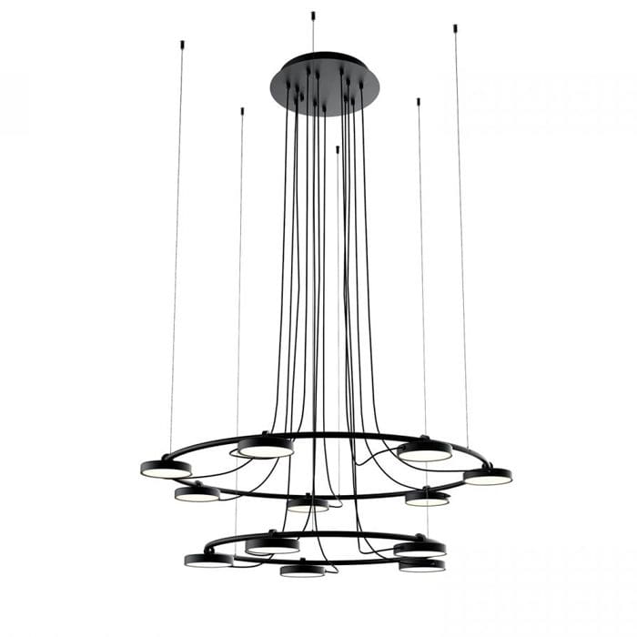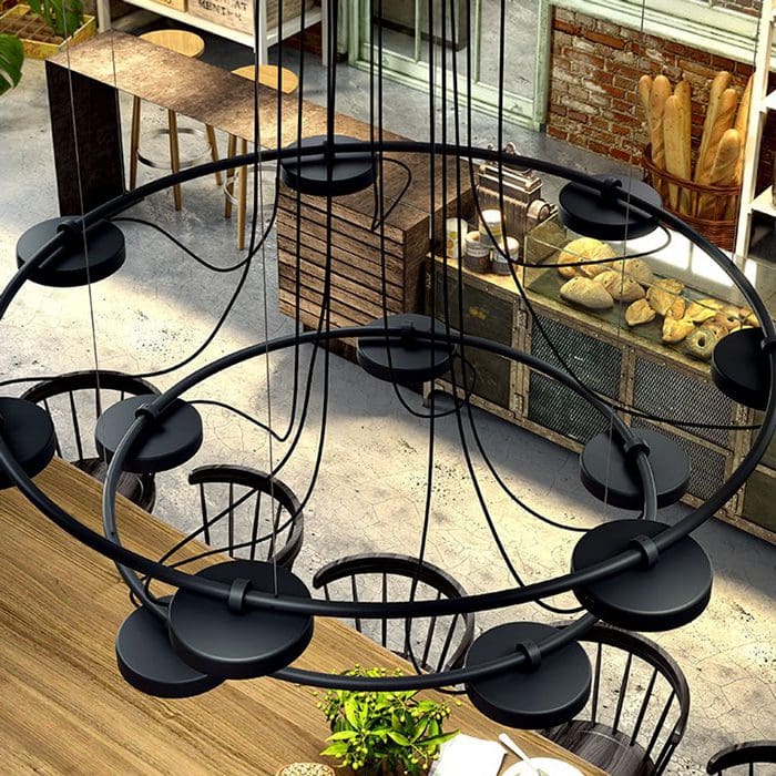 Aro is an incredible collection of lamps designed by Jordi Blasi and produced by the Estiluz brand. Metal suspension lamp with adjustable circular heads and acrylic diffusers. The heads rotate up to 106o. The lamp can be mounted with all heads facing up or all heads facing down. 1-10V dimmable.