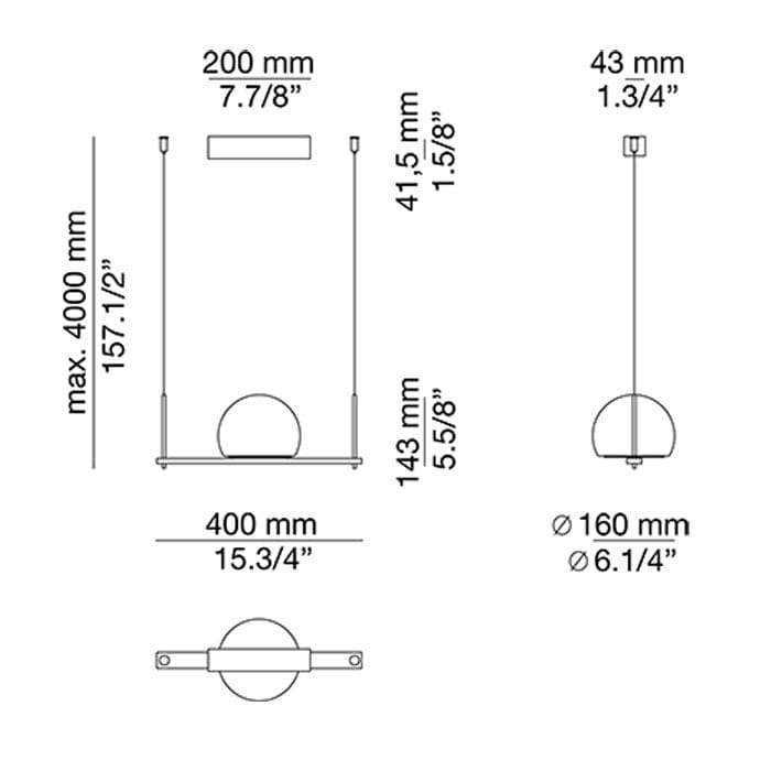 Light source: LED 6,1W 2700K – Ang. 120º – CRI90 – 350mA – 230V – Typ 565 lumens – Driver Universal plugd and Dimmable triac – Dimension L. 40 cm – P. 16 cm – H. 14,3 cm
