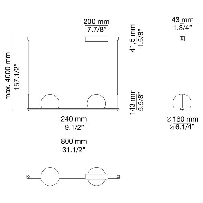 Light source: LED 2×6,1W 2700K – Ang. 120º – CRI90 – 350mA – 230V – Typ 2×565 lumens – Driver Universal plugd and Dimmable triac – Dimension L. 80 cm – P. 16 cm – H. 14,3 cm