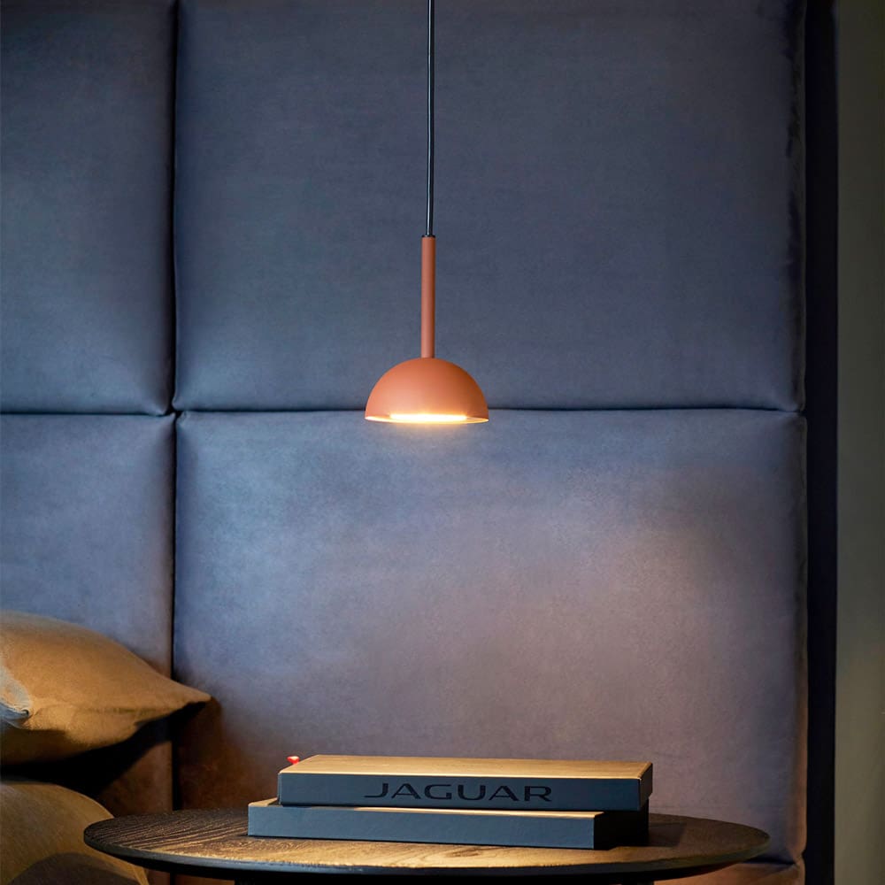 Cupolina is available as a floor lamp, table lamp, applique and suspension, all sharing the same common element, a small dome from which the light escapes. It can be combined with various metal structures to adapt it to any space and any need. The rounded lines of Cupolina are always proportionate and balanced, creating elegant and versatile lamps, designed to enrich the space in which they are placed. All models are available in white, black and terracotta.