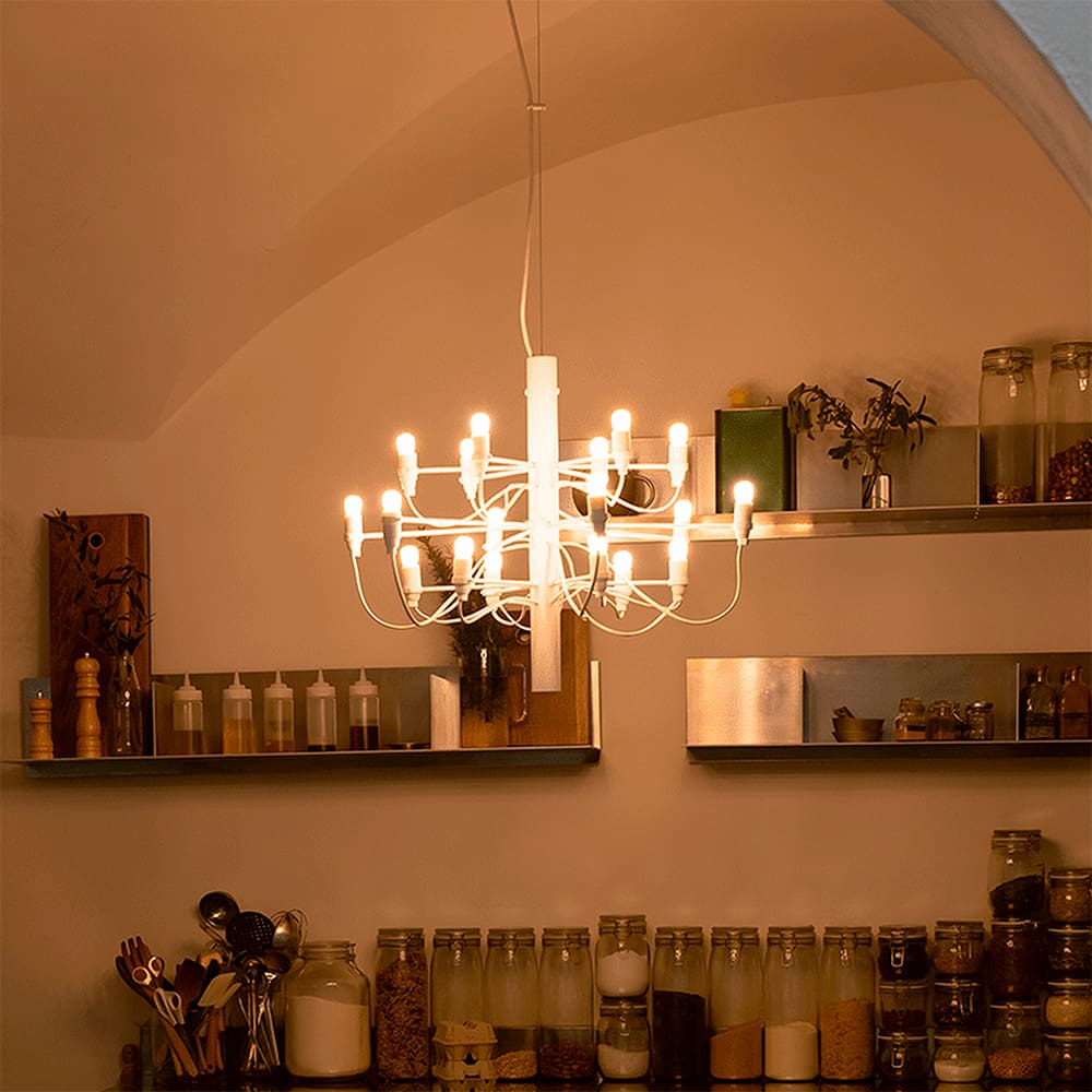 2097 is a suspension lamp with diffused light, designed by Gino Sarfatti for the Flos brand.