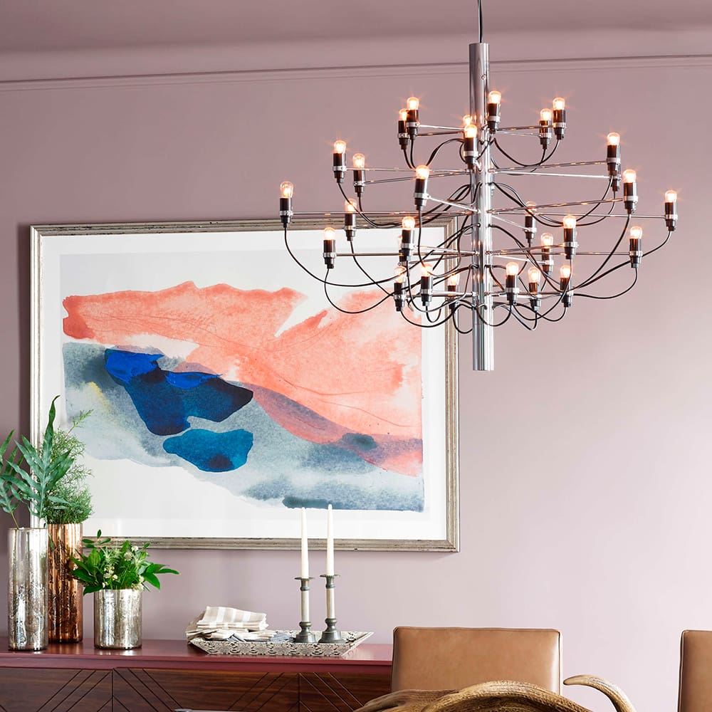 2097 is a suspension lamp with diffused light, designed by Gino Sarfatti for the Flos brand.