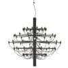 The 2097 suspension lamp is a modern style chandelier, with diffused light, designed by Gino Sarfatti for the Flos brand. The central iron structure is available in several finishes, including brass, chrome, black, gold and white, offering a variety of options to suit a wide range of environments and aesthetic tastes. The lighting is distributed uniformly thanks to the strategic arrangement of the arms and bulbs, ensuring a pleasant distribution of light in the surrounding environment. The chandelier is suspended via a sturdy and safe ceiling attachment, completed by a steel rosette which adds a touch of solidity and impeccable finish.