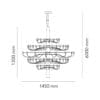 Light source: 75 x LED 2W E14 (inclusa) IP20 – 220-250 V – dimmable. Dimensions: H max. 600 cm Ø 145 cm