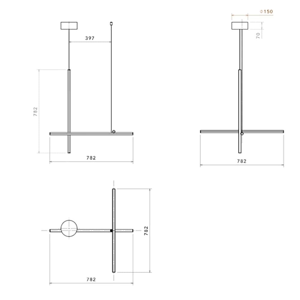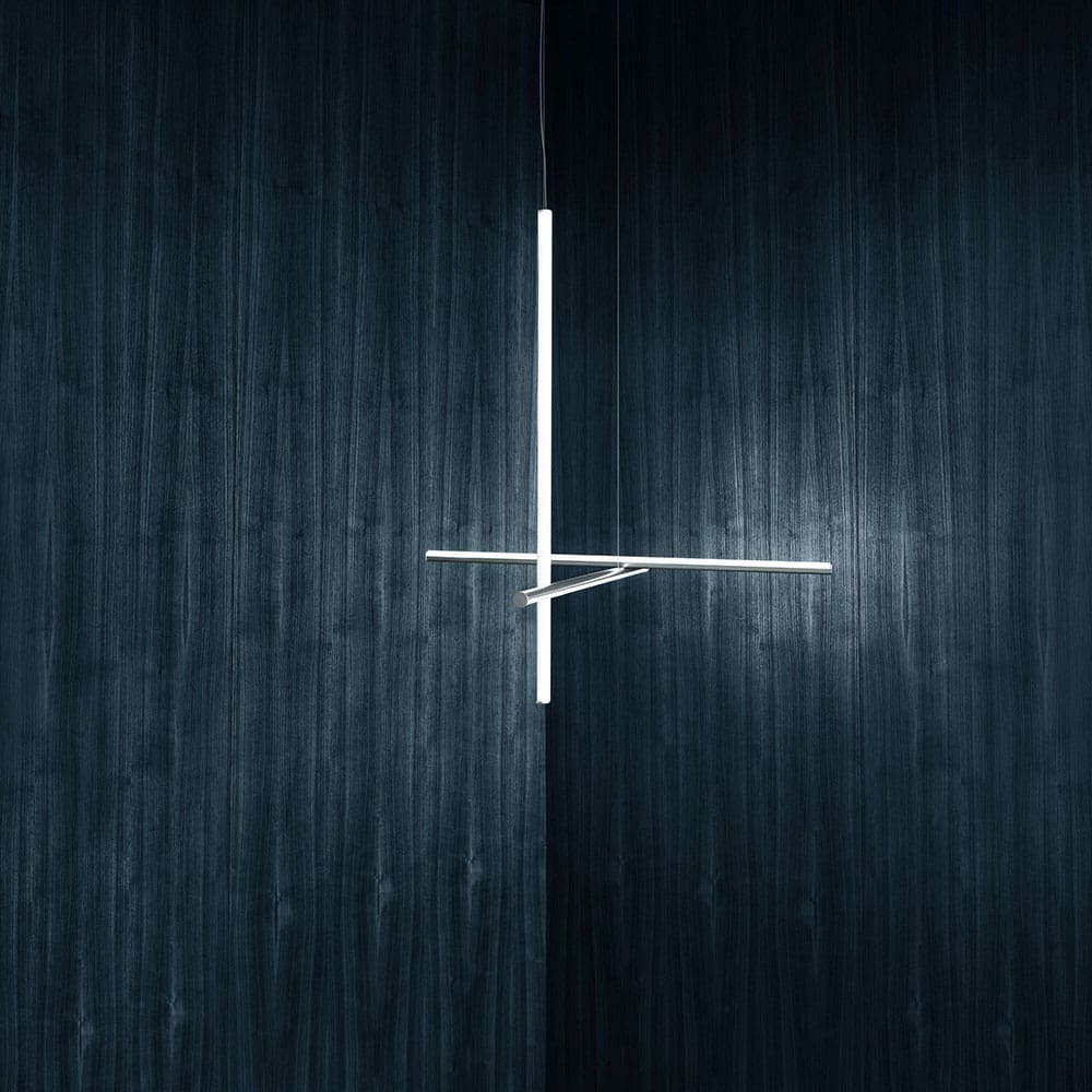 Coordinates Suspension by Flos, designed by Michael Anastassiades, is a modular lighting system that blends elegance and technology, enabling customized luminous compositions. The horizontal and vertical elements, crafted from anodized aluminum with a refined champagne finish, integrate seamlessly into any space. Platinum optical silicone diffusers house integrated LED strips (CRI 95) to deliver high-quality, uniform illumination.