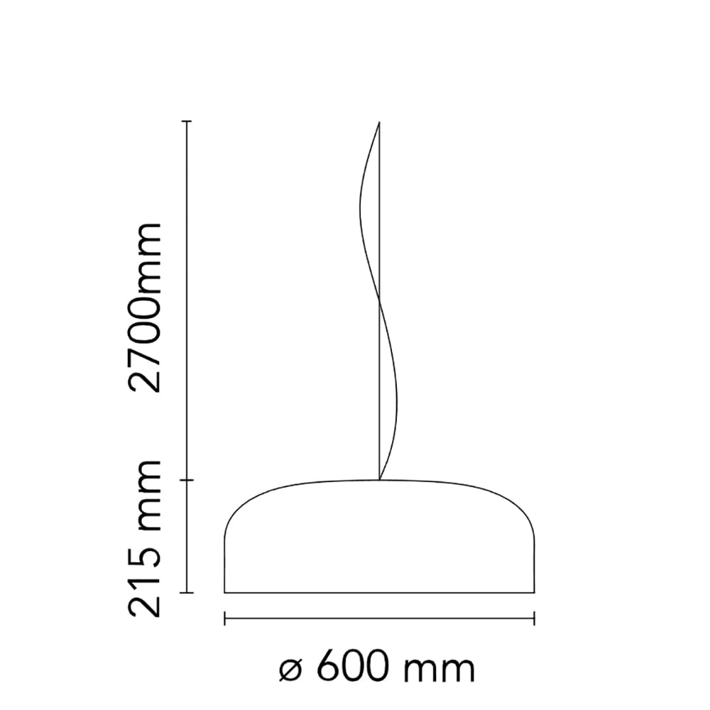 Light source: 70W E27 – 220-250V – Remote dimmer (not included) – IP20. Dimensions: Ø 60 cm H 21,5 cm