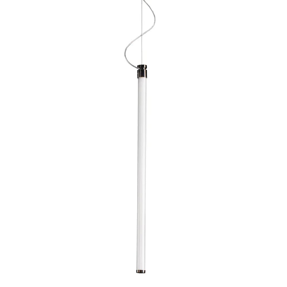 The OORT system, designed by Jacopo Roda for the Fontana Arte brand, is composed of tubular elements in borosilicate glass inside which are placed flexible latest generation LED light tubes, easily replaceable, with perfectly uniform 360° light emission and also certified for outdoor environments. The borosilicate glass is grooved internally, a device that enhances the light making it warm and welcoming, brings out the effect of light and shadow and allows easy cleaning of the smooth external surface. The light is diffused and dimmable, available at 3000K (1900Lm/m) or Dim To Warm. In Dim To Warm tubes the color temperature changes, depending on the dimming, from 1800K up to 4000K at maximum intensity. The flow depends on the dimming up to a maximum of 1000Lm/m. On request it is possible to supply the product at 2700K.