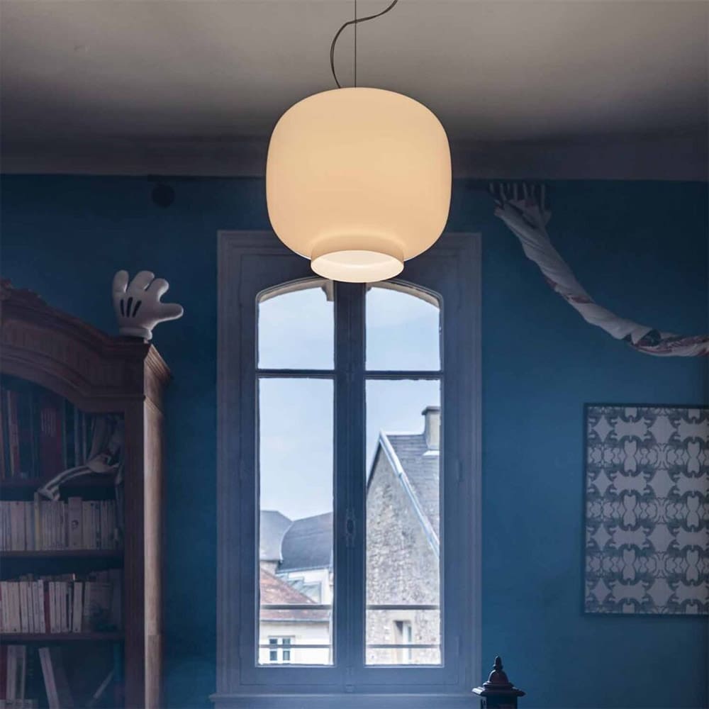 The Chouchin Bianco 3 by Foscarini, designed by Ionna Vautrin, is also available in an LED version and with a 10-meter cable for versatile and customizable configurations. This suspension lamp is a modern reinterpretation of traditional Japanese lanterns and is the most compact model in the collection. Entirely crafted in white blown glass with a glossy finish, it emits a radiant, solar-like light that creates a warm and refined atmosphere. Perfect for residential or contract spaces, it is an ideal choice for those seeking a minimalist yet sophisticated design. The Chouchin Bianco 3 seamlessly blends tradition and innovation, showcasing a sleek style and the artisanal quality of blown glass. It also comes with an offset canopy kit.