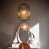 Light source: Max 6x60W G9 + 1x100W E27 PAR 30 – IP20. Dimensions: Ø 75 cm H 115 cm