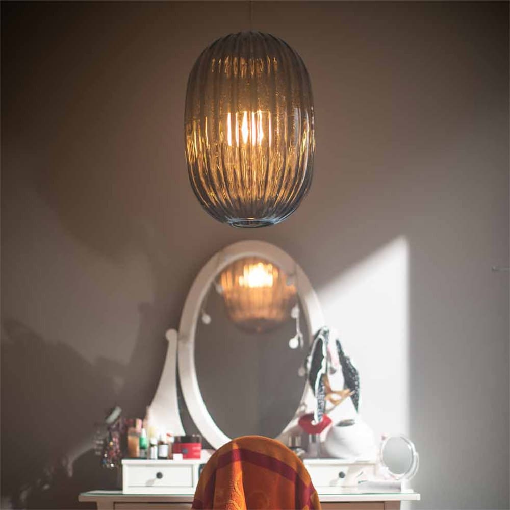 Plass suspension lamp by Foscarini, designed by Luca Nichetto, merges tradition and innovation. Inspired by Venetian glass beads, Plass replicates their shape and colors using transparent polycarbonate. Its surface, adorned with subtle imperfections reminiscent of handcrafted glass, creates a vibrant interplay of light. Available in two sizes, it suits large-scale projects or more intimate spaces. Multiple suspension versions are also available: double, triple, quadruple, and quintuple, for creating original and dramatic lighting compositions. A suspension lamp with diffused and direct light, its transparent polycarbonate diffuser is made using rotational molding, a technology that enables the production of large hollow bodies without seams. The internal frame is crafted from brushed aluminum, complemented by a stainless steel suspension cable and a transparent power cord, ensuring both elegance and functionality.