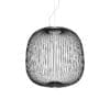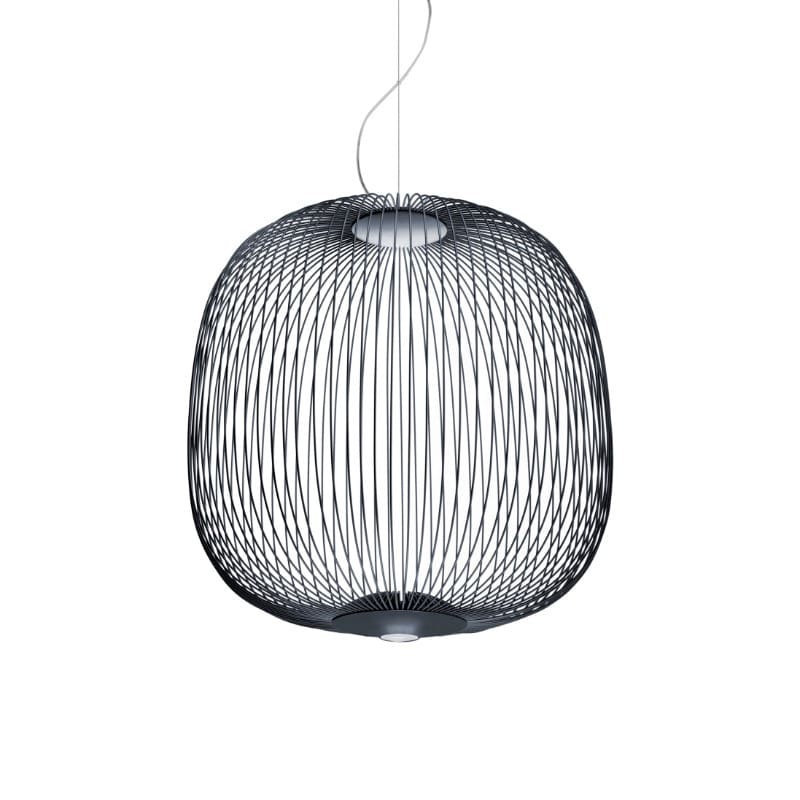 Spokes 2 Small by Foscarini, designed by Garcia Cumini, is a suspension lamp that embodies lightness and movement. Light filters through a magical geometric lattice, creating a mesmerizing interplay of voids and solids, while its shape evokes a lantern or birdcage. This collection offers great versatility with various shapes, sizes, and colors. The steel rods, powder-coated in matte finishes for white and black and liquid-coated for other colors, are attached at the top to ABS/polycarbonate disks and at the bottom to an aluminum module that houses and dissipates the LED boards. Power is delivered through two opposing rods, eliminating visible electrical cables and enhancing the lamp’s clean and contemporary design.