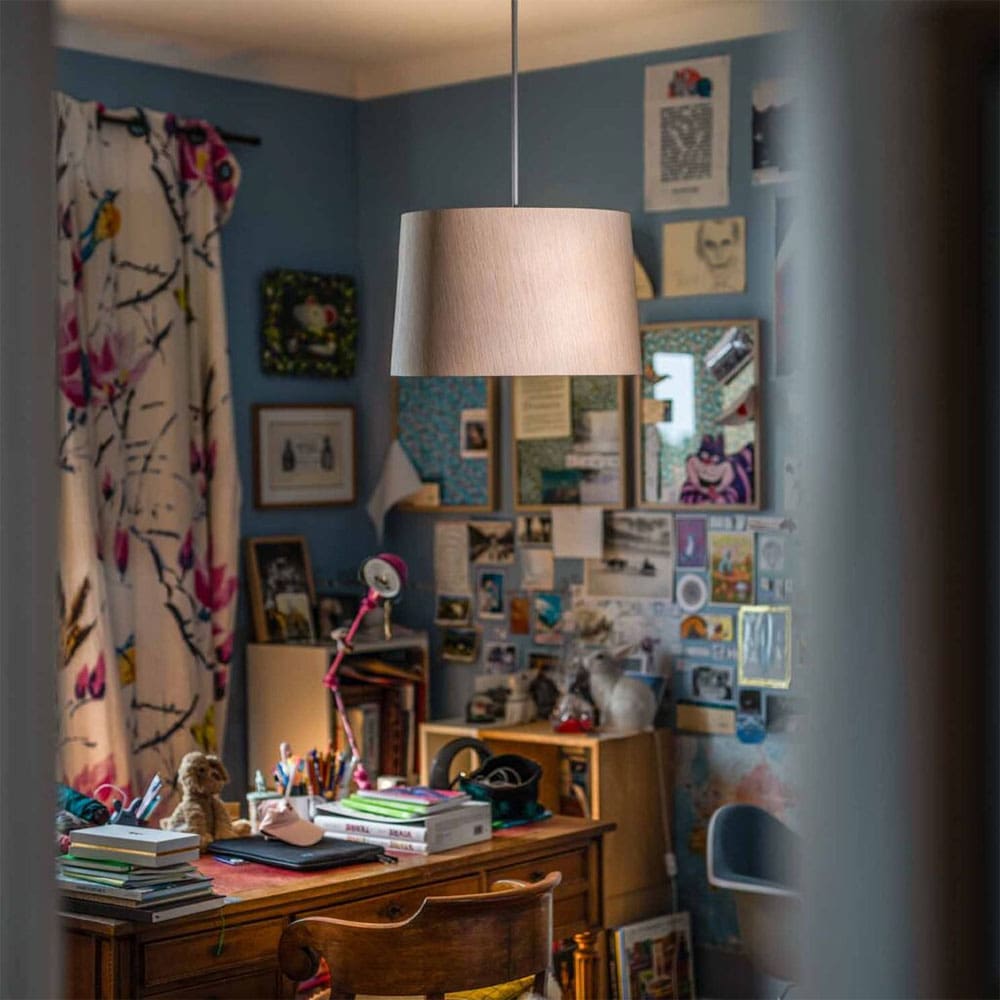 Twiggy Wood by Foscarini, designed by Marc Sadler, is a suspension lamp that brings the warmth and elegance of wood to a variety of settings. It provides intense downward lighting while diffusing ambient light upwards, creating a welcoming atmosphere. A small decorative stem made of composite material on a fiberglass base, liquid-painted, enhances the lamp’s distinctive design and is located along the electrical cord. The diffuser is crafted from two layers of bleached oak wood, while a bamboo ring, just a few millimeters thick, ensures its shape and stability at the top and bottom. Twiggy Wood is a refined lighting solution, ideal for modern interiors that embrace a natural, organic aesthetic.