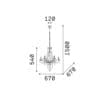 Light source: E14 max 6 x 40 W (Bulb not included) – 220-240V – Dimmer determined by the bulb – IP20. Dimensions: H min 790 / max 1500 mm Ø 670 mm
