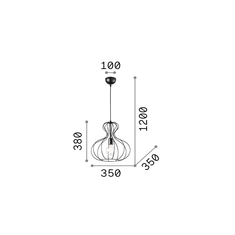 Light source: E27 max 1 x 60 W (Bulb not included) – 220-240V – Dimmer determined by the bulb – IP20. Dimensions: H min 630 / max 1200 mm Ø 350 mm