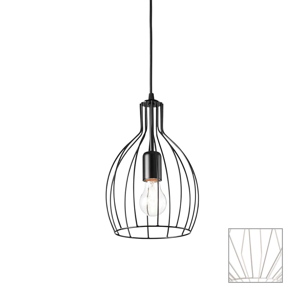 The Ampolla-2 SP1 suspension lamp, belonging to the Ampolla collection of the Ideal-Lux brand, stands out for its modern design and its versatility. The lamp holder rose and the decorative structure, both made of metal, have an elegant finish available in black and white options. This color choice allows you to easily integrate the lamp with various decor aesthetics, adding a touch of contemporaneity and style to the room.